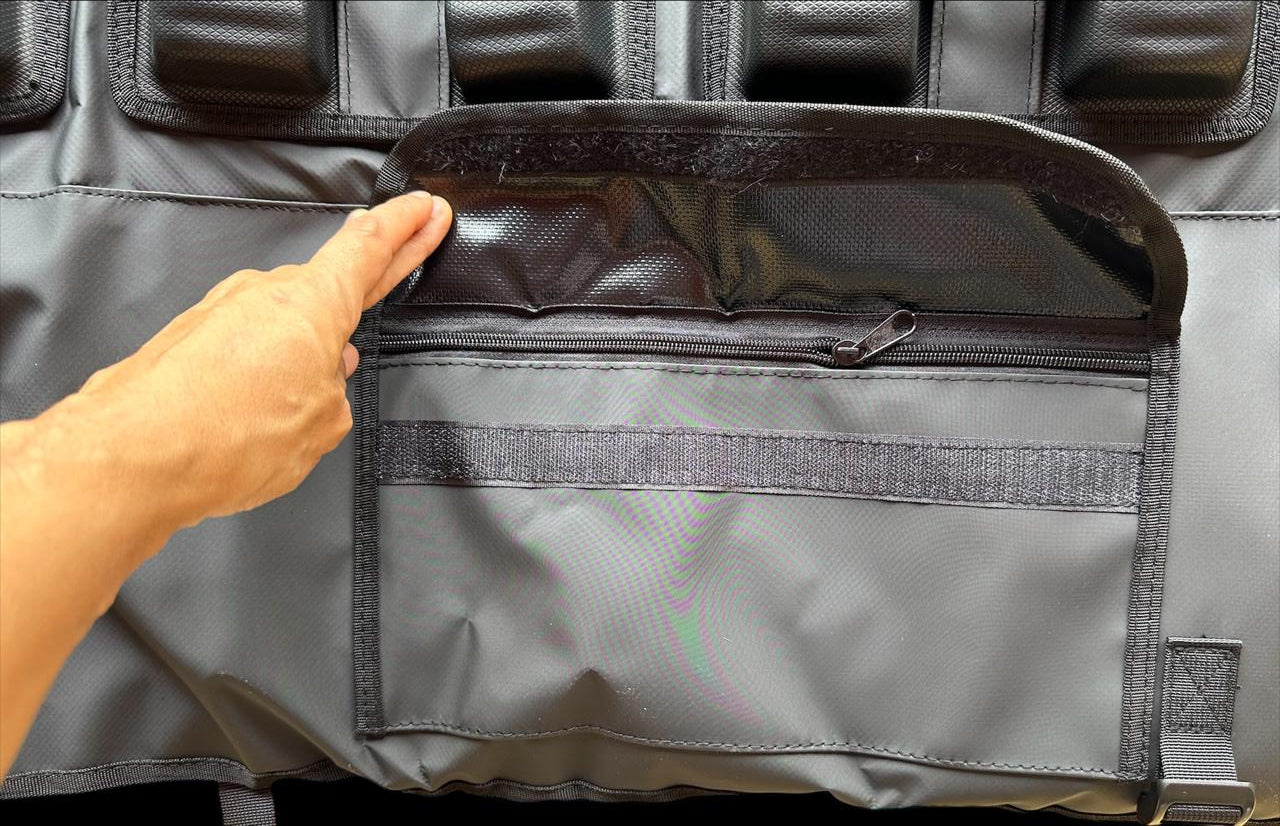 Bolsillo con belcro para acceso facil a la apertura de la compuerta.